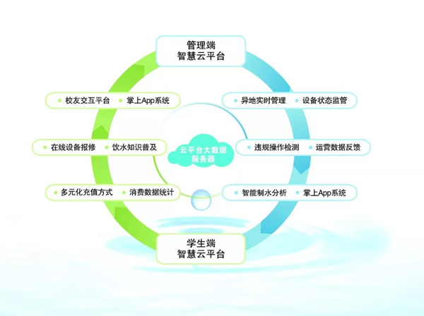 此外,榮事達著眼校園直飲水的互聯(lián)網(wǎng)化建設(shè),依托先進的云端大數(shù)據(jù)平臺、無線網(wǎng)絡(luò)體系和智能一卡通技術(shù)等,創(chuàng)新打造ultraWiFi智慧管理系統(tǒng),系統(tǒng)直連ultraWiFi凈水主機、開水器、飲水機等終端定制設(shè)備,實現(xiàn)精細化管理。學(xué)生在使用中不僅能查詢飲水消費記錄、在線報修設(shè)備、與校友交流等,還能擁有多元化充值方式選擇,充分享受快捷的智能化飲水體驗。 同時設(shè)備運營商也可通過電腦或手機APP端口接入云數(shù)據(jù)平臺,異地監(jiān)測工程運行狀況,實時掌握水電成本、消費收益、設(shè)備狀態(tài)等數(shù)據(jù)信息,日常管理更簡單。