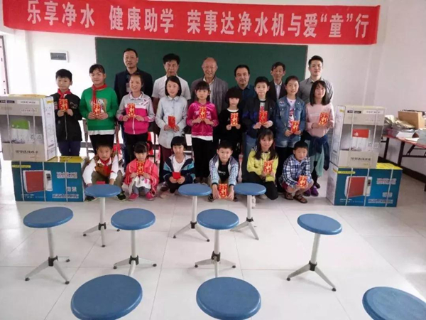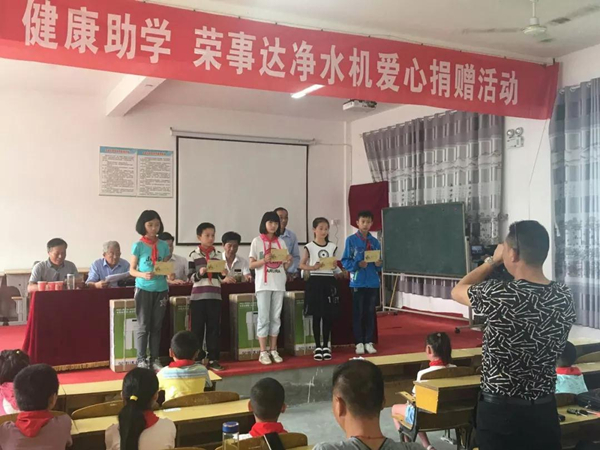 為了解決貧困地區(qū)孩子們的飲水安全問題,自2011年起,榮事達發(fā)起“樂享凈水·健康助學(xué)行動”,通過向貧困地區(qū)學(xué)校免費提供直飲水設(shè)備、援建校園直飲水工程、開展健康知識講座等志愿服務(wù),讓青少年兒童喝上健康衛(wèi)生的飲用水,同時樹立科學(xué)的飲水理念,幫助孩子茁壯成長。助學(xué)活動開展以來,榮事達志愿服務(wù)團隊已遍及安徽、江蘇、陜西、江西、河南、河北等多個地區(qū),捐贈、安裝凈水設(shè)備數(shù)千套,受益師生群體龐大,社會反響空前。