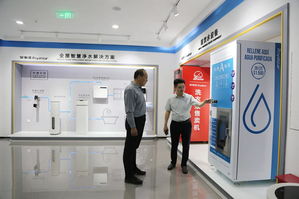 此次考察,特別聚焦于集團(tuán)順應(yīng)新基建趨勢(shì),結(jié)合物聯(lián)網(wǎng)、大數(shù)據(jù)和云計(jì)算技術(shù),首創(chuàng)的社區(qū)智能凈水工廠項(xiàng)目,領(lǐng)導(dǎo)一行全面而深入地了解智能凈水工廠在社區(qū)新場(chǎng)景下的設(shè)計(jì)思路、工程建設(shè)、運(yùn)營(yíng)策略以及合作模式等。從設(shè)備的智能制造,到直飲水工藝流程的精細(xì)管理,再到智能管理平臺(tái)的高效運(yùn)營(yíng),這一系列環(huán)節(jié)構(gòu)成了集團(tuán)所打造的一體化、全方位、智能化的凈水產(chǎn)業(yè)鏈。項(xiàng)目凸顯了集團(tuán)在新質(zhì)生產(chǎn)力背景下所做出的創(chuàng)新突破,致力于追求可持續(xù)的高品質(zhì)發(fā)展新方向。