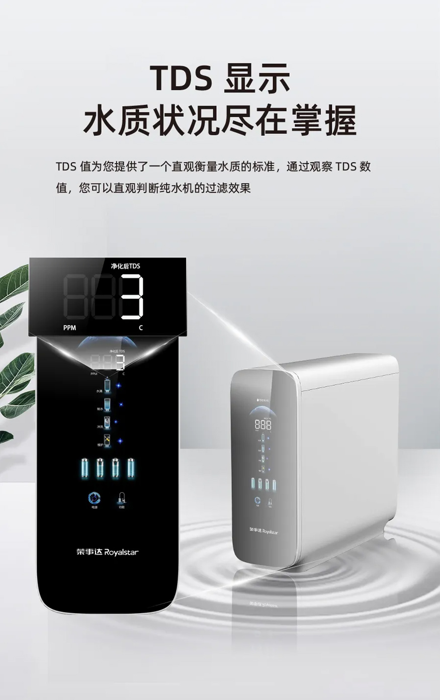 “這水過濾得干凈嗎?濾芯是不是該換了?”每次接水時(shí)的小嘀咕,榮事達(dá)早就替你想到了。新品配備的智能大屏,就像個(gè)透明的“水質(zhì)管家”,機(jī)器運(yùn)行狀態(tài)、實(shí)時(shí)水質(zhì)情況一目了然。尤其搭載的TDS顯示功能,讓抽象的“干凈”有了具體的答案。有了它,給寶寶沖奶更踏實(shí),給老人泡茶更安心。