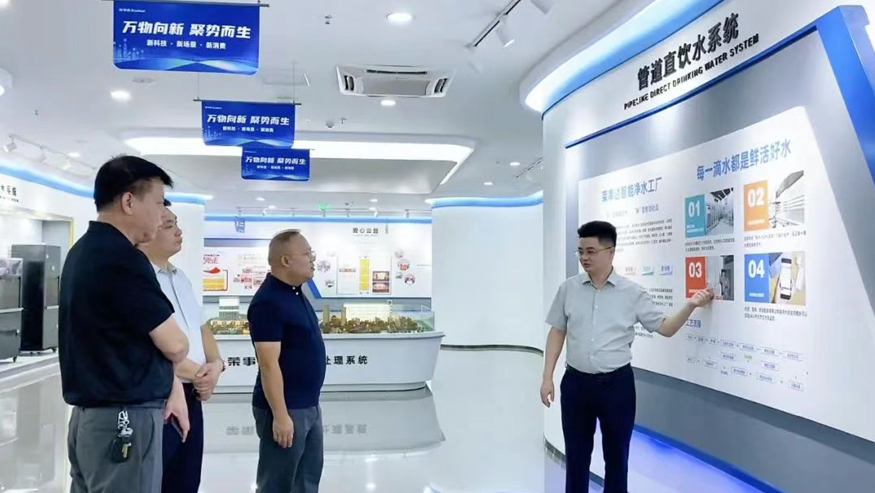 白冰董事長一行認(rèn)真聽取講解,還就榮事達(dá)管道直飲水項(xiàng)目的設(shè)備性能、技術(shù)原理等細(xì)節(jié)與陪同人員深入交流。榮事達(dá)管道直飲水項(xiàng)目是針對(duì)社區(qū)、學(xué)校、醫(yī)院、企事業(yè)單位及工廠等場景,提供定制化飲水模式,涵蓋社區(qū)智慧水站、校園智慧凈水屋、高端直飲水設(shè)備及變頻供回水系統(tǒng),旨在為民眾打造便捷、高端、健康的飲水服務(wù)。
