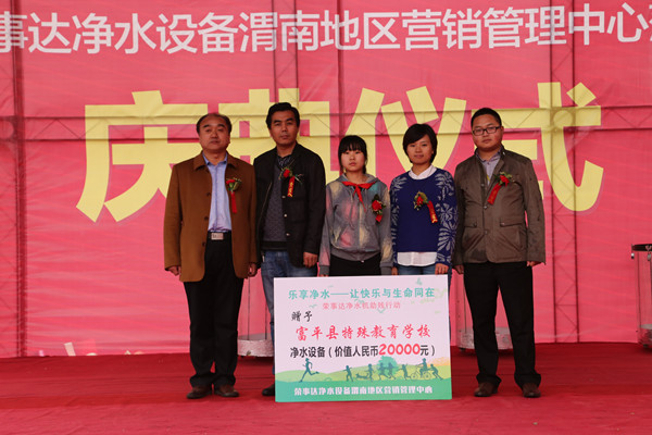 2015年1月12日,榮事達(dá)水工業(yè)公司與安徽省青年志愿者協(xié)會(huì)共同發(fā)起了一項(xiàng)范圍覆蓋全國(guó)的大型助殘公益行動(dòng)“樂享凈水——讓快樂與生命同在”。此次活動(dòng)通過(guò)向不符合“國(guó)家生活飲用水衛(wèi)生標(biāo)準(zhǔn)”的康復(fù)中心、特殊學(xué)校、助殘機(jī)構(gòu)等捐贈(zèng)凈水設(shè)備以及提供志愿服務(wù),積極改善當(dāng)?shù)貧埣踩说娘嬎顮顟B(tài),以實(shí)際行動(dòng)喚起社會(huì)對(duì)殘疾群體的重視與關(guān)愛。