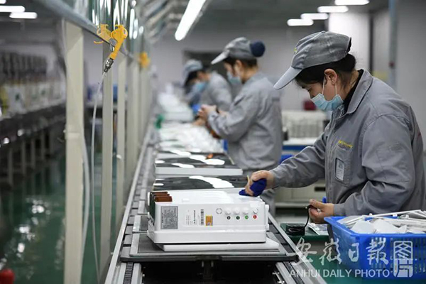 員工在家用凈水機(jī)生產(chǎn)線上作業(yè)