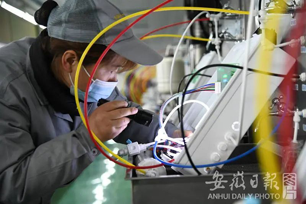 員工在家用凈水機(jī)檢測(cè)線上作業(yè)