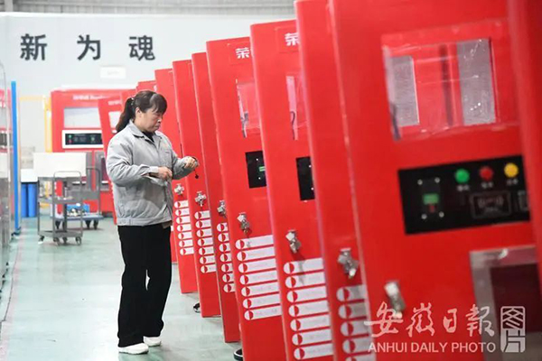 員工在自動(dòng)售水機(jī)生產(chǎn)線上作業(yè)