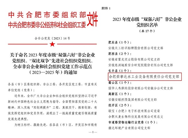 - 開年第一獎!榮事達(dá)水工業(yè)黨支部榮獲市級“雙強(qiáng)六好”非公企業(yè)黨組織稱號