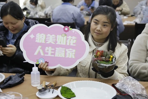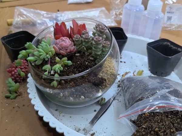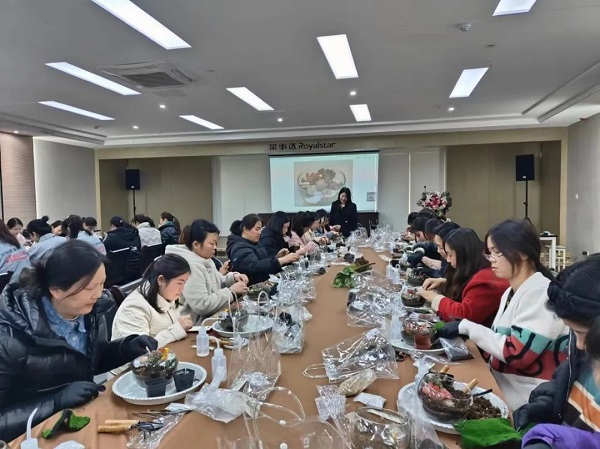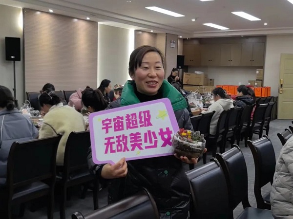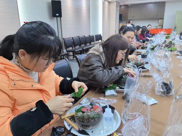 在DIY過程中,大家互相交流、分享心得,笑聲和談話聲此起彼伏。有的女神選擇了簡約風(fēng)格,將多肉植物種植在小巧精致的花盆里,展現(xiàn)出一種清新脫俗的美;有的則選擇了色彩豐富的搭配,將不同顏色的多肉組合在一起,創(chuàng)造出一幅幅生動的畫面。