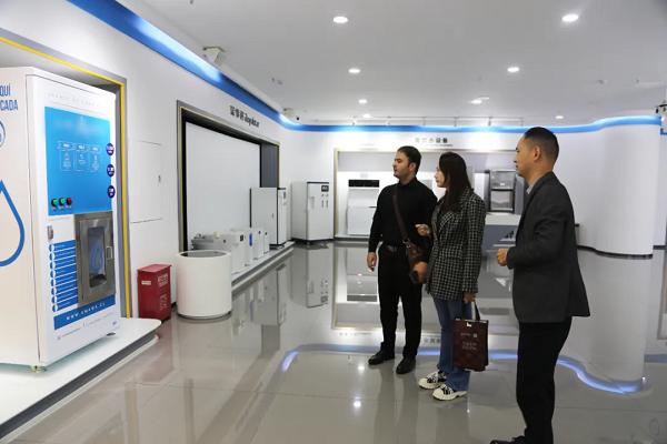 在現(xiàn)場(chǎng),國(guó)際貿(mào)易負(fù)責(zé)人向客戶闡述了公司在新質(zhì)生產(chǎn)力發(fā)展趨勢(shì)下,運(yùn)用“物聯(lián)網(wǎng)+社區(qū)服務(wù)終端”的理念,推出智能凈水工廠、自助售水機(jī)等新型社區(qū)終端服務(wù)項(xiàng)目,旨在實(shí)現(xiàn)智能化社區(qū)管理??蛻魧?duì)此創(chuàng)新且可持續(xù)的高質(zhì)量發(fā)展模式表示贊賞。
