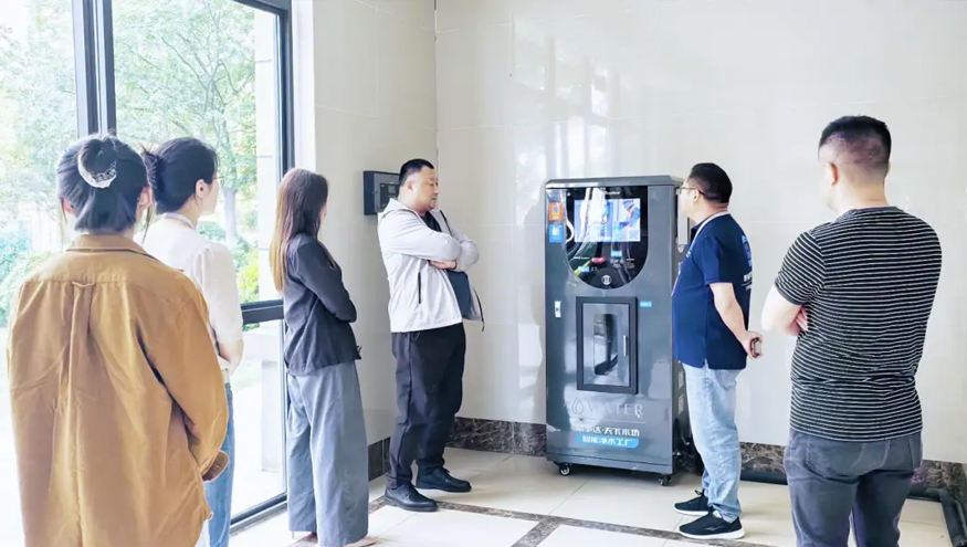 為了更直觀地感受項(xiàng)目的實(shí)際應(yīng)用效果,客戶一行來到合肥樣板“工廠”,自榮事達(dá)社區(qū)智能凈水工廠入駐該小區(qū)以來,現(xiàn)制現(xiàn)飲的新鮮直飲水已融入居民日常生活,無論是泡茶、泡奶粉,還是煮飯煲湯,都離不開它,受到小區(qū)居民的廣泛好評(píng)。