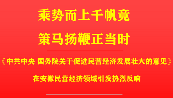 近日,《工商導(dǎo)報》報道了合肥榮事達(dá)水工業(yè)設(shè)備有限責(zé)任公司董事長雷鳴關(guān)于《中共中央國務(wù)院關(guān)于促進(jìn)民營經(jīng)濟(jì)發(fā)展壯大的意見》感悟。◎《工商導(dǎo)報》微...
