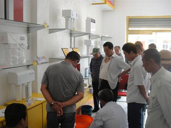 膠南地區(qū)水質(zhì)檢驗TDS值偏高,水質(zhì)狀況較差,代理商在開業(yè)當(dāng)天專門舉辦了健康飲水知識講座,普及凈水知識,獲得了當(dāng)?shù)鼐用竦母叨日J(rèn)可。為了慶祝開業(yè)、回饋當(dāng)?shù)叵M者,開業(yè)期間購機顧客均可享受折扣優(yōu)惠,并獲贈精美禮品。