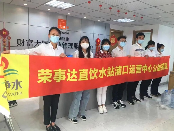 5月31日,榮事達(dá)直飲水站南京經(jīng)銷商王新玲向上海金地物業(yè)有限公司南京分公司捐贈價值萬余元的物資——榮事達(dá)直飲水水卡和榮事達(dá)飲水機(jī),保障全體物業(yè)工作人員在疫情防控期間也能喝上安全健康好水。