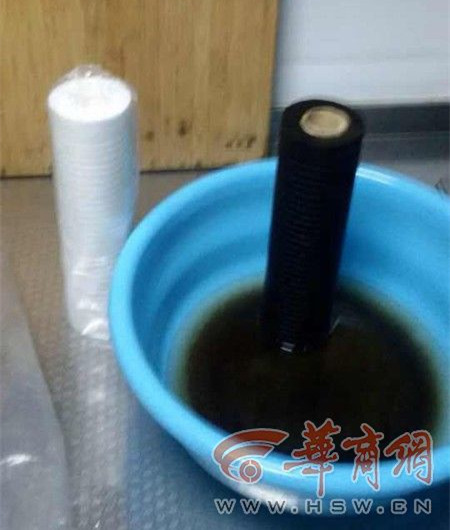 該小區(qū)多家住戶使用的是同一品牌的凈水器,該凈水器廠家一負(fù)責(zé)人解釋,凈水器都有前置濾芯和后置濾芯,一般都是建議6個(gè)月更換一次前置濾芯?!罢8鼡Q下來的顏色應(yīng)該是微微發(fā)黃或鐵銹紅?!痹撠?fù)責(zé)人說,但小楊家的前置濾芯更換下來卻是黑巧克力色,而且摸上去是油泥狀的物質(zhì)。